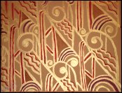Electric colours dominated in the early 1920s, vivid shades of lavender, orange-red & hot pink were juxtaposed with lime-greens & chrome yellows to generate a psychedelic palette. The late 1920s ushered in more neutral colour schemes with the emphasis on texture - charcoal, bottle green, dusty brown. The familiar motifs from the Near East, the Orient, folk art, cubism & fauvism were applied with great vigour to textiles, resulting mostly in floral & geometric patterns. Tapestries & rugs were often made to designs created by artists like Henri Matisse, George Rouault, Fernand Léger & Pablo Picasso. In Germany the Bauhaus revived the textile industry & demonstrated an affinity for colour reminiscent of the work of Paul Klee, whose teaching at the workshops helped to free the Bauhaus artists from the conventions of textile pattern & ornament.